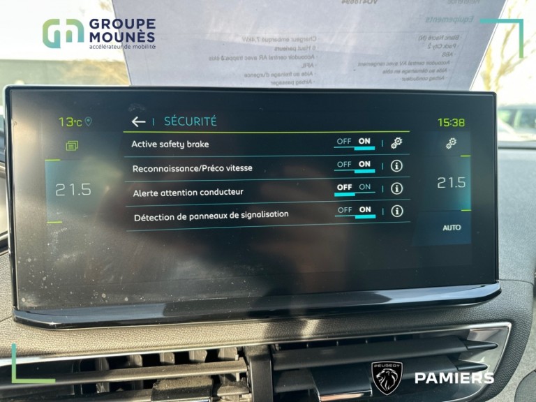 - Avertisseur de franchissement de ligne avec action sur la direction vitesse max de déclenchement 180 km/h 112 mph